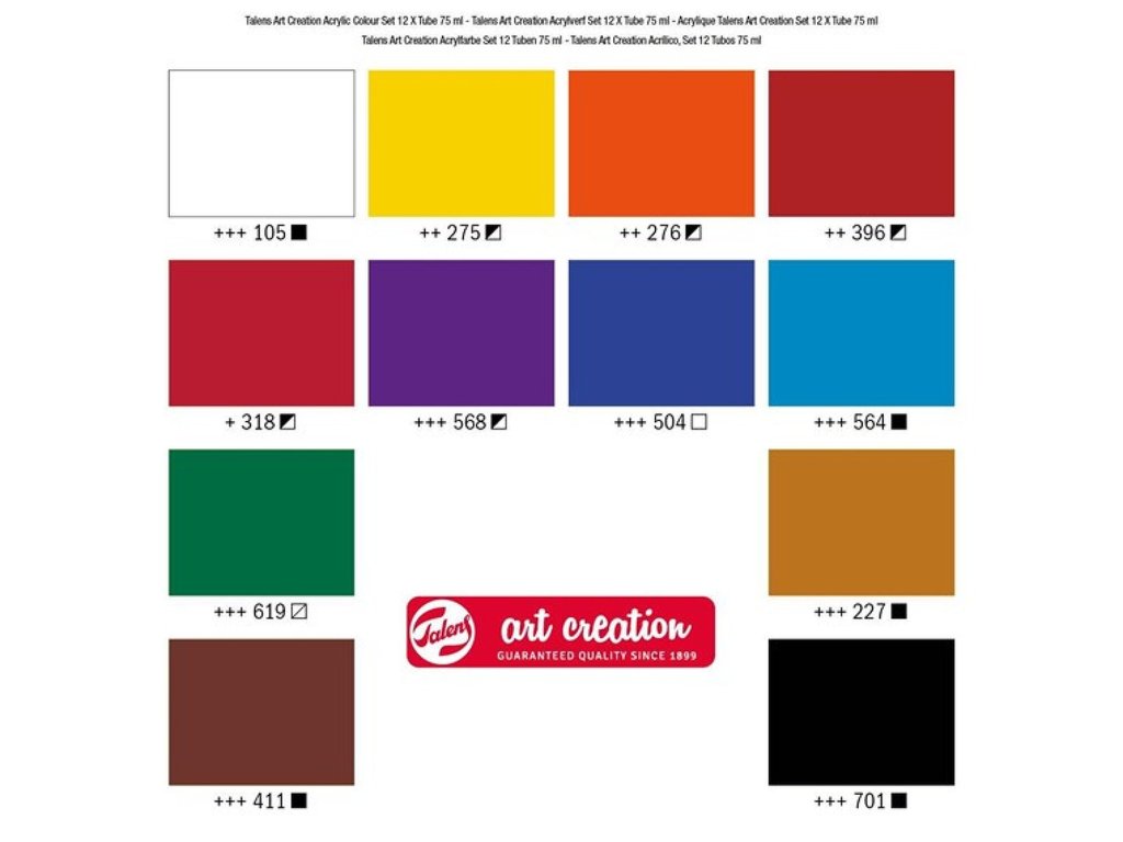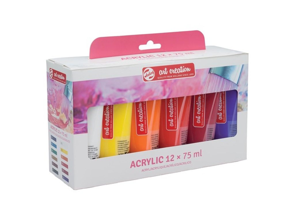 Sada základních a dobře mísitelných odstínů akrylových barev Art Creation 12 x 75 ml.