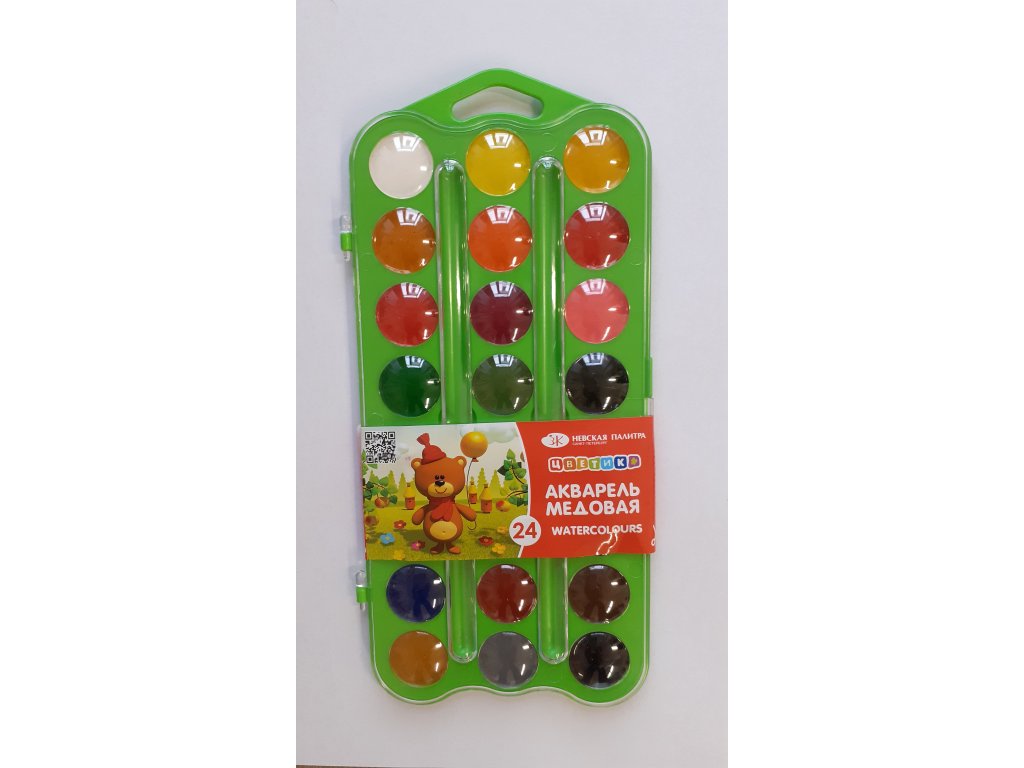 24 barev na plastové zelené paletě se zářivými barvami o velikosti 22 / 10,5 cm