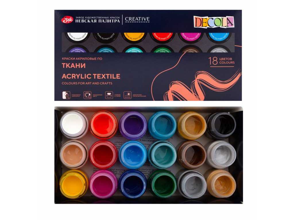 Akrylové barvy na textil Decola - Nevskaya Palitra - 18 x 20 ml