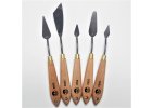 Sada 5ks špachtlí s pružnou čepelí Rukojeť dřevěná tmavá Velikost : celková délka 18 - 22 cm Způsob balení : na blistru zn.: Sonnet Ojedinelé tvary po vaši kreativitu