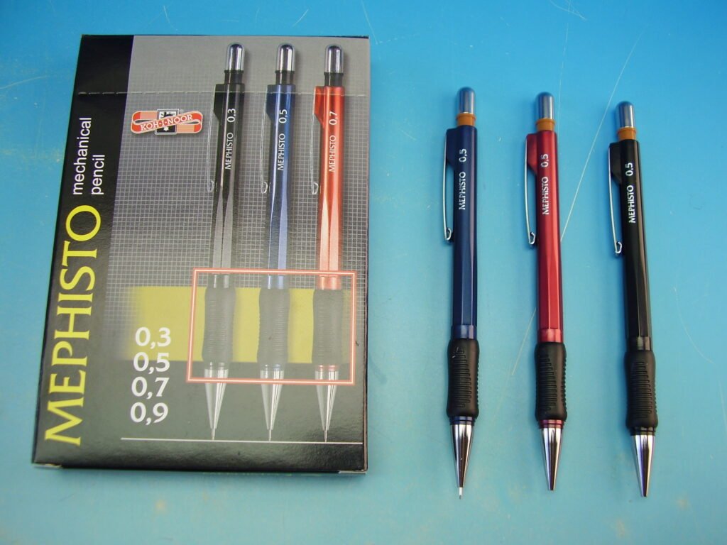 Mechanická mikrotužka kombinace kov-plast, gumový úchyt.