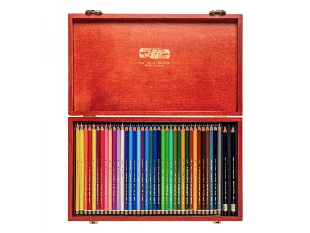 Umělecké pastelové tužky KOH-I-NOOR POLYCOLOR v dřevěné kazetě 36 + 2 grafitové tužky umělecké kvality 2B a 5B