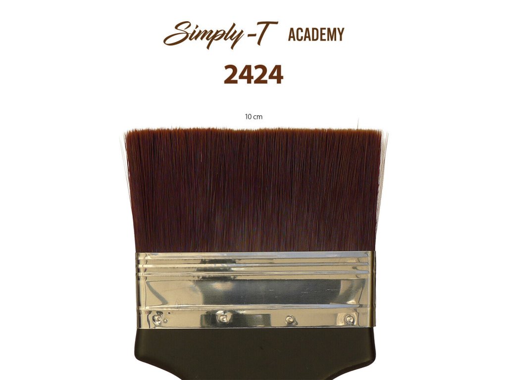 Extra široké štětce Simply-T ACADEMY s krátkou matně-černou dřevěnou rukojetí se zlatým koncem a středně tuhými syntetickými vlákny.