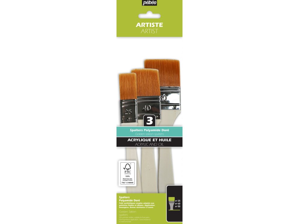 Štětce Pébéo jsou vyrobeny ze zlatého taklonu, jemného syntetického vlákna. Měkké, flexibilní štětiny poskytují rovnoměrné nanášení barev a jsou vhodné pro tekuté barvy, jako jsou akrylové, nebo olejové. Díky těmto vlastnostem vlákna se redukují stopy tahů štětce.