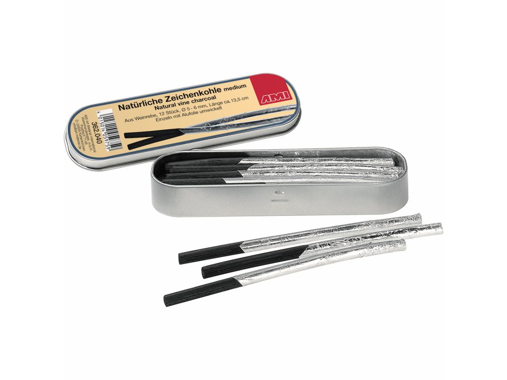 Sada přírodních uhlů z révy vinné zn. AMI, 12 ks v plechu 5-6 mm